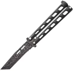 Bear & Son Butterfly Damascus Steel Silver Vein Die Cast Metal Handles Balisong Knife 114D