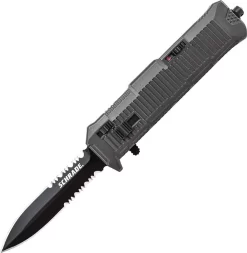 Schrade Actuator Out The Front Assist Tanto Serrated Stainless Blade Gray Handle Knife OTF8TBS