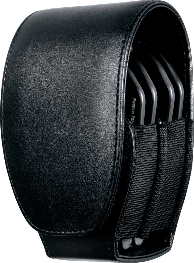 Black leather construction. Secure restraints with a protective Velcro cover and elastic side wall technology. Spare pentagon key. Concealed key pocket. Hang packaged. Integral spare key retention pocket. Hang packaged. Cuffs sold separately.