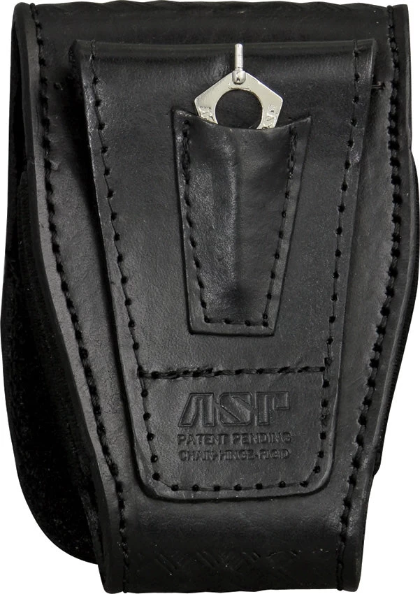 Black leather basketweave. Fits chain, hinged or rigid handcuffs. Integral spare key retention pocket. Hang packaged. Cuffs sold separately.