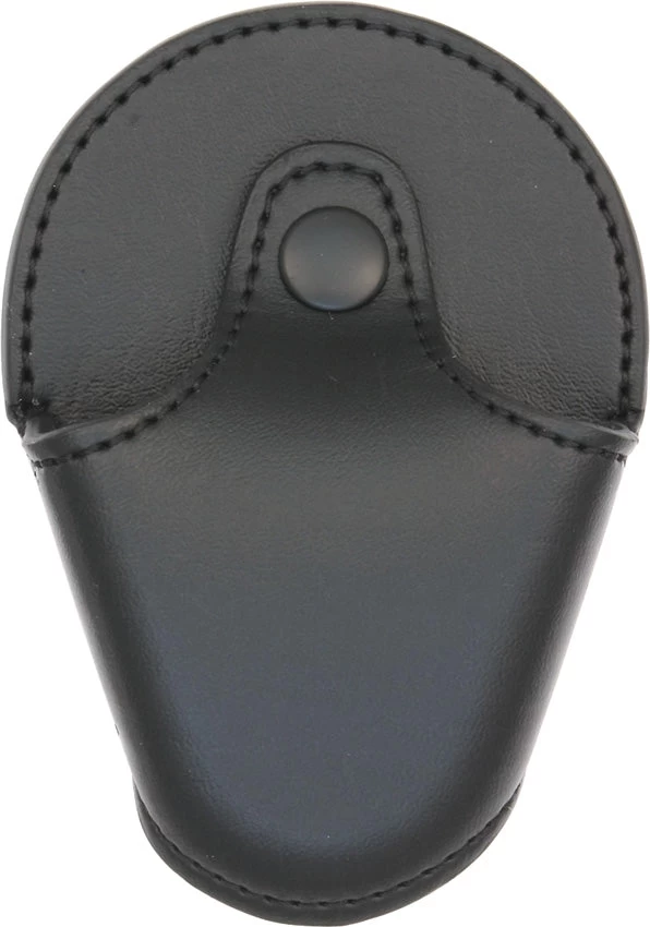 Black leather. Fits chain or hinged handcuffs. Integral spare key retention pocket. Hang packaged. Cuffs sold separately.