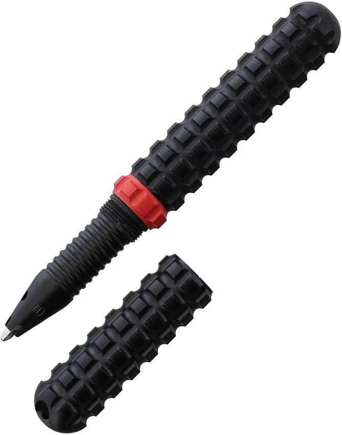 4.25″ overall. Screw cap. Red plastic inlay. Fisher Space Pen cartridge. GID glow blue (long glow type) end cap. Aluminum construction. Color: Black. Packaged in a plastic sleeve.