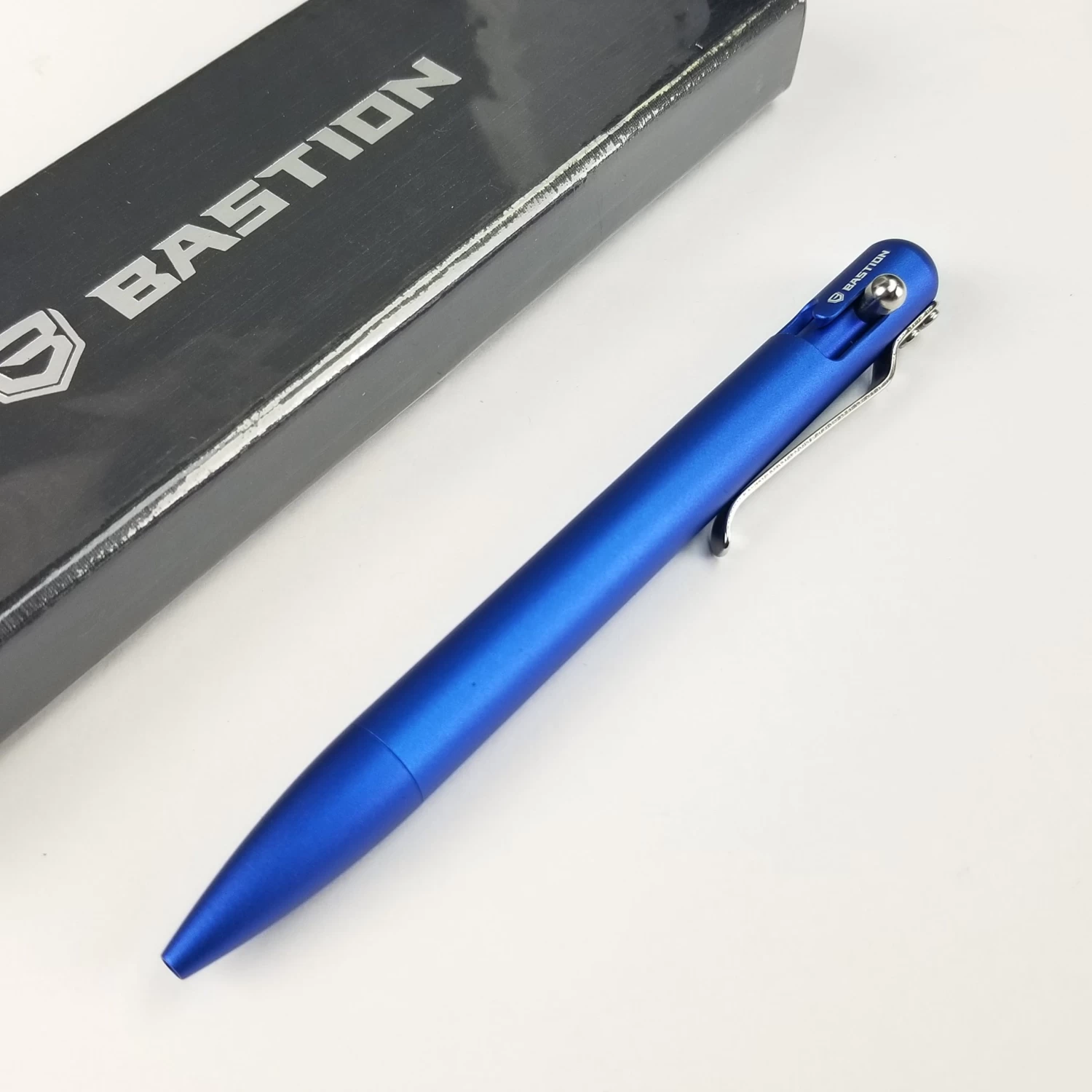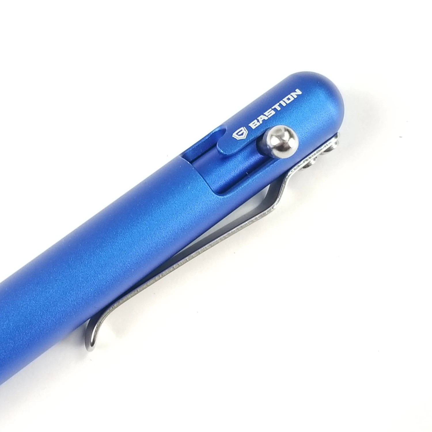 Bastion EDC Blue 6061-T6 Aluminum Bolt Action Writing Pen W/ Pocket Clip 249L