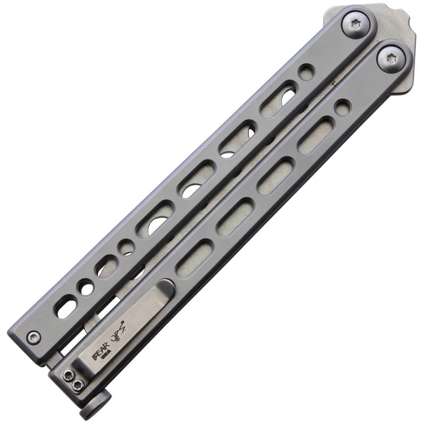 Bear Ops Bear Song VIII Balisong Trainer Bead Blast Stainless Blunt Tip Butterfly Knife 35107