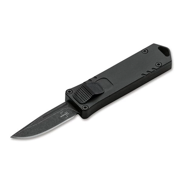 Boker Plus Mini Eagle 2.0 Automatic OTF Black Aluminum D2 Steel Recurve Blade 06EX246