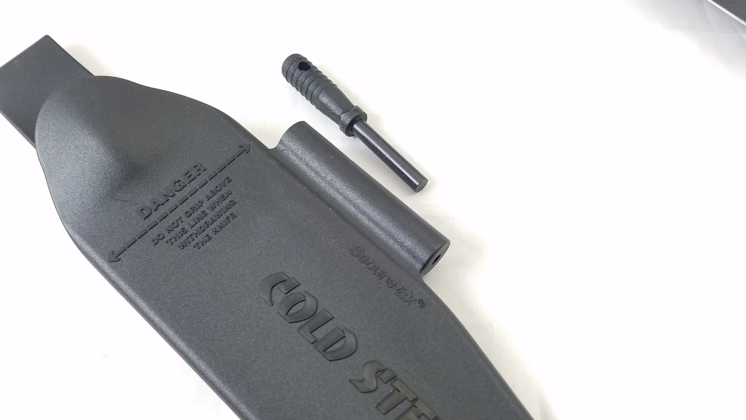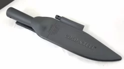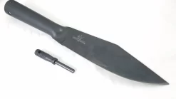 Construction: SK-5 High Carbon Steel; Overall: 12.25″; Blade: 6.5″ l Carbon Steel l Standard Edge l Black Finish; Handle: Black l Carbon Steel; Other Info: Continuous curved bowie point style blade. Hardened to 54 HRC. Hollow handle will accept survival supplies or a variety of handle extensions which can maximize reach, leverage or ease of throwing. Black Secure-Ex sheath with clip and features a 2 7/8″ overall Ferrocerium Fire Steel with lanyard hole.