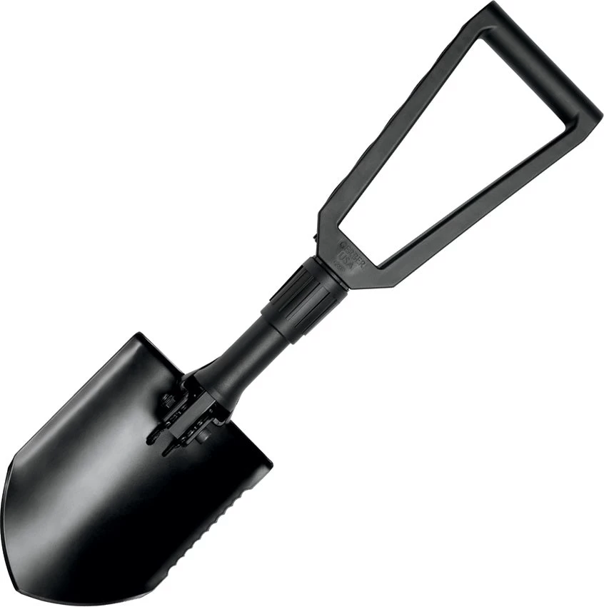23 3/4″ open. 9 1/4″ closed. Black powder coated serrated carbon steel blade. Cast pick attachemnt can chop through solid terrain. Black anodized 7075 aluminum shaft and glass filled nylon handle.