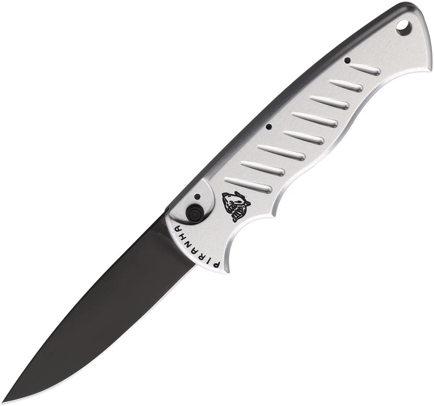 Piranha Knives Automatic P-1 Tactical Pocket Knife Button Lock Silver Aluminum 154CM Blade CP1ST
