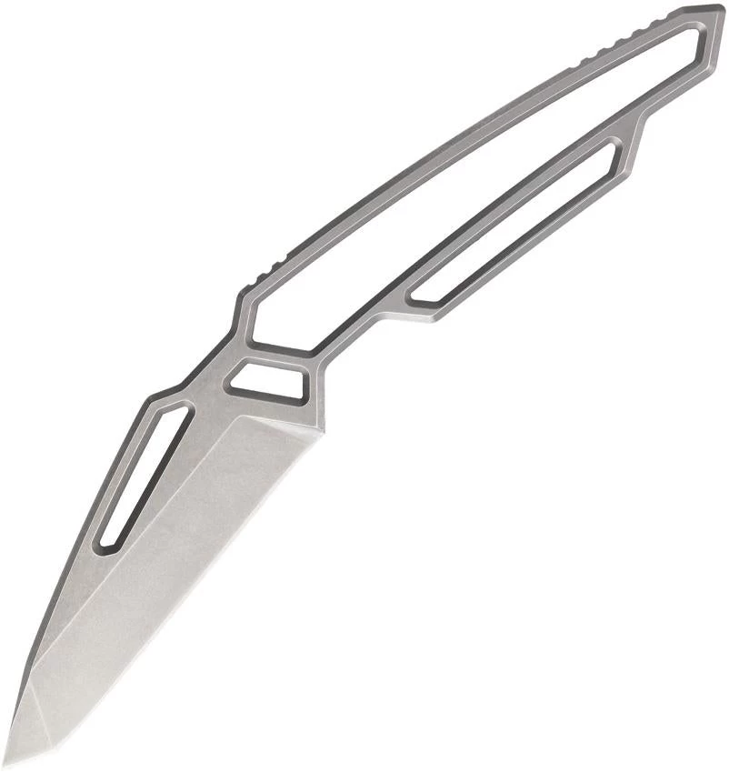 ​Overall: 7.125″; Blade: 3.125″ l CPM154 Stainless l Standard Edge l Stonewash Finish; Handle: Stainless; Other Info: Tanto blade. One piece stainless skeletonized construction. Black Kydex neck sheath with ball chain lanyard. Boxed.​ USA Made.