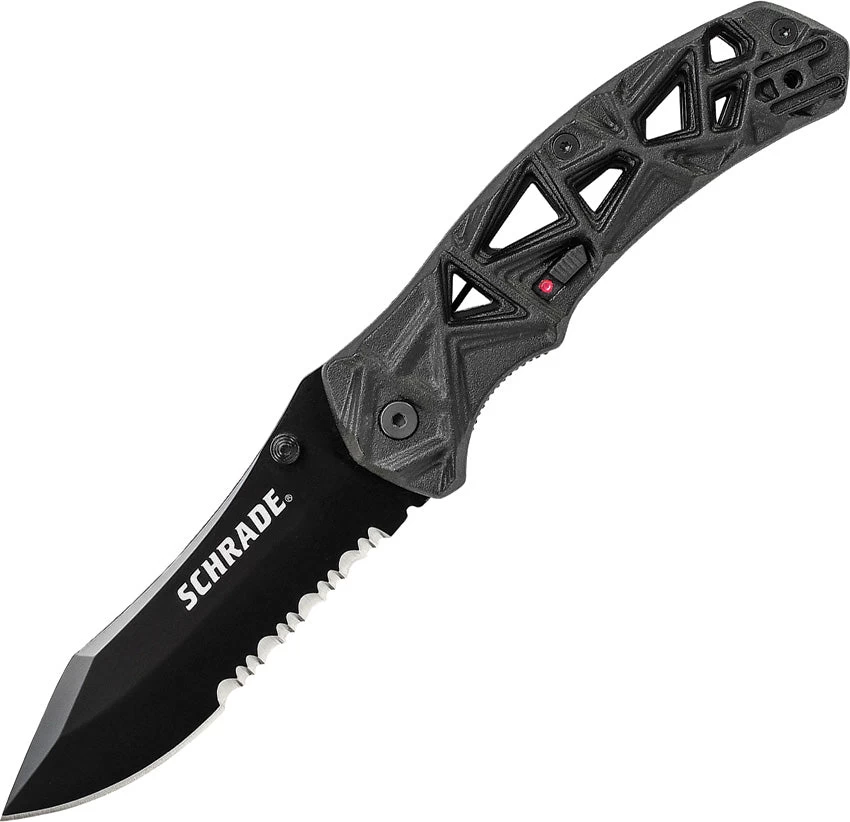 Schrade Shizzle M.A.G.I.C. Black A/O Assisted Open AUS-8 Serrated Folding Knife A11bs