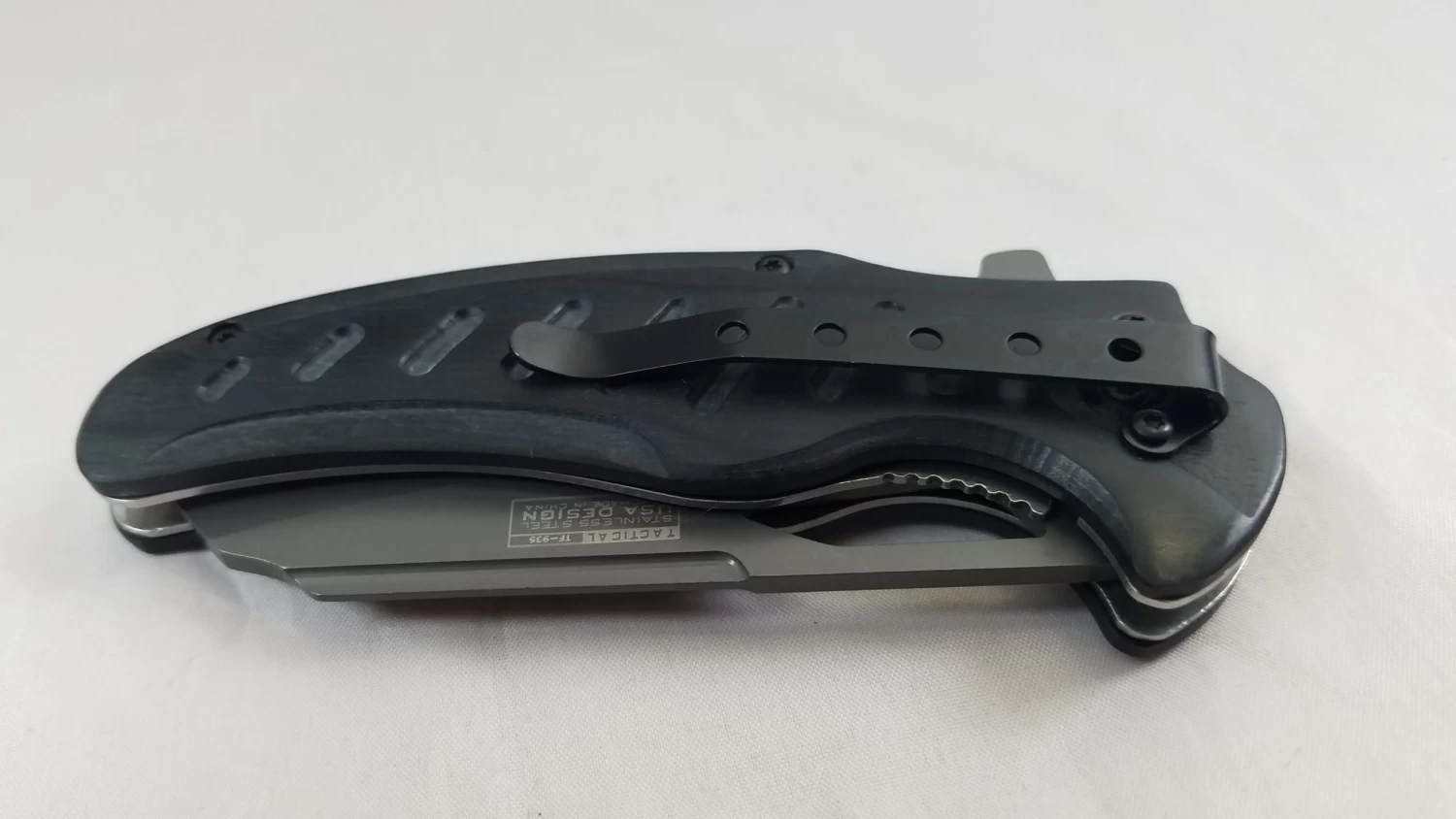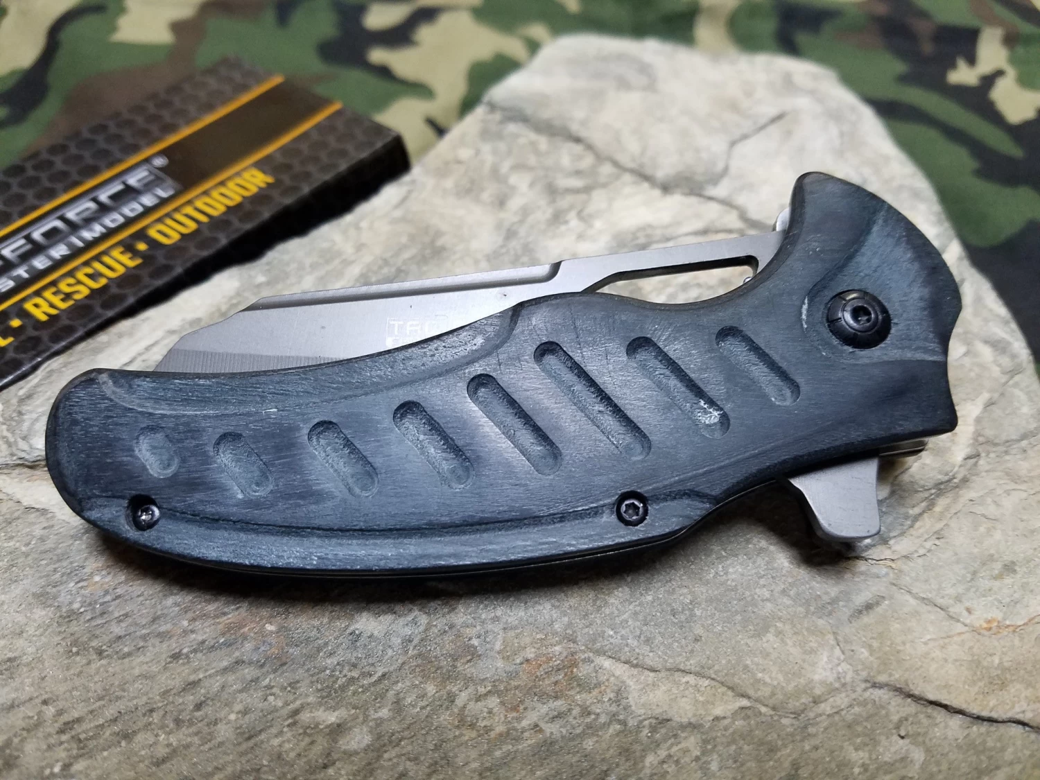 Tac Force 8″ Grey Ti Folding Knife Black Wood Assisted Opening Pocket EDC – 935bk
