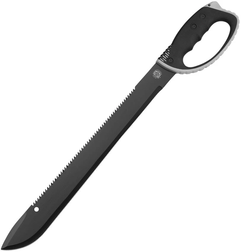 25″ overall. 18″ two-tone finish stainless blade. Black and gray TPR handle. Lanyard hole. Sawback blade. Black nylon belt sheath. Boxed.