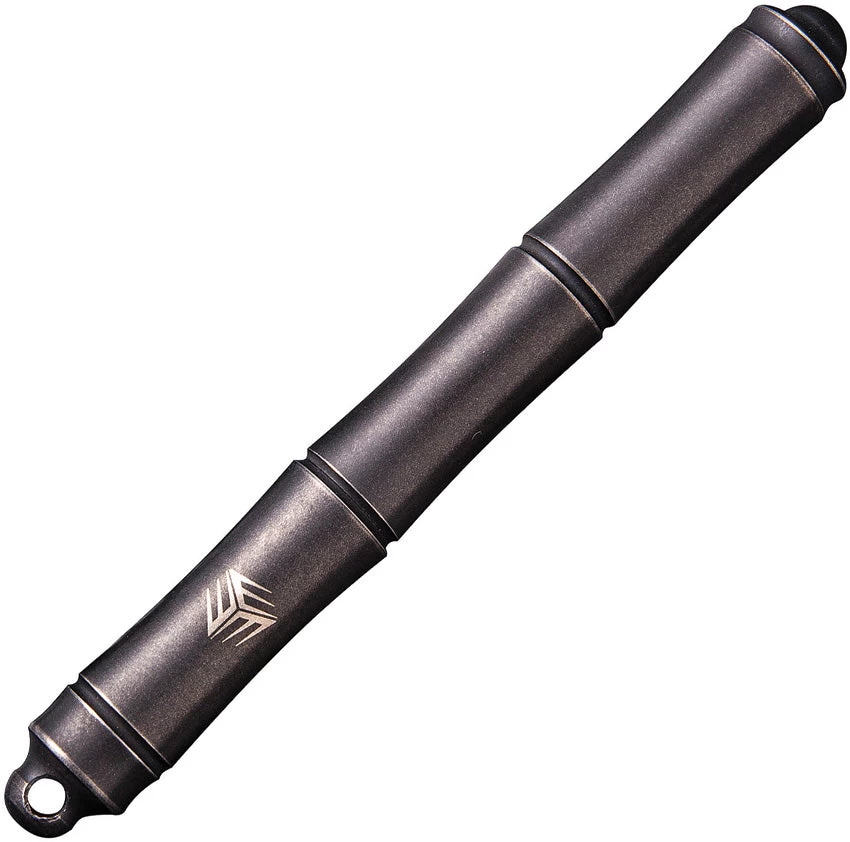3.5″ overall. Weight: 0.56oz. Black stonewash finish titanium construction. Stainless ring. Screw on/off cap. Lanyard hole. Black ink. Includes two refills. Boxed.
