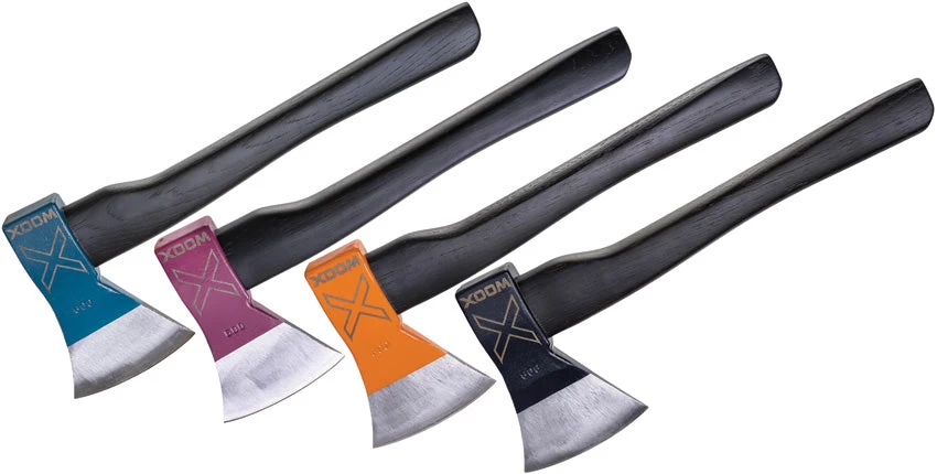 14″ overall. 6″ carbon steel axe head with 4 ” cutting edge. Black American Hickory handle. Weight: 1.7lb. Head weight: 1.3 lbs. Two of each color axe head: Blue, Purple, Orange, Black. Thunderbird meets ALL the National and International competition requirements (WATL & IATF). Boxed.
