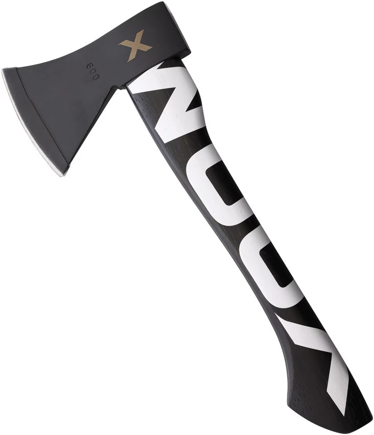 14″ overall. 6″ black coated 1060HC steel axe head with 3.75″ cutting edge. Black American Hickory handle. White finish handle logo. Sheath not included. Boxed.