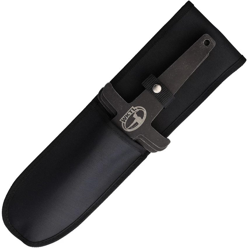 14.25″ (36.2cm) overall. 7.63″ (19.38cm) black coated 3Cr13 stainless blade. One-piece construction. Weight: 1.12lb. An extended dual bladed knife allows for full coverage over a full inch down the blade. WKTL blade guards are formulated to protect throwers from bounces and knives flying through protective fencing while still allowing for the highest precision. Boxed.